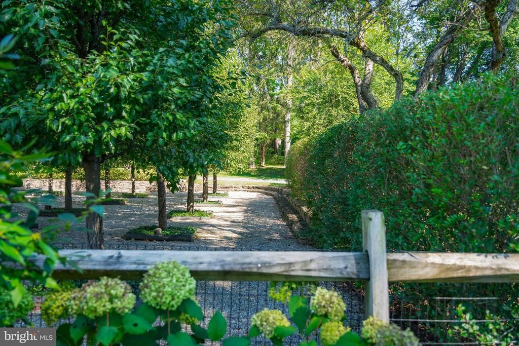 Holmquist Farm epitomizes a harmonious coexistence between nature and the comforts of home located in Solebury Twp on 12 PRIVATE FENCED ACRES. Every aspect of the property has been renewed or improved in the last three years, including stunning new floors and unique light fixtures throughout the main house, an oversized 3 car detached garage with luxe 2-bedroom GUEST HOUSE, extensive landscaping, INFITITY POOL, and even a pickleball court. Entry begins with a classic formal living room with deep silled windows, walls of built-ins, and a wood-burning fireplace. The large family room boasts a 2-story vaulted ceiling with reclaimed wood beams and massive chandeliers, along with a floor-to-ceiling stone fireplace flanked by tall windows. The 2022 GOURMET KITCHEN is a chef’s dream, with marble backsplash, soft close cabinets, burnished bronze fixtures, and a large island. The dining room is elegant with hand painted orchids adorning the walls and French doors leading out to a bluestone patio surrounded by stately rows of flowering trees. The luxurious FIRST FLOOR PRIMARY suite is a private oasis, with a high ceiling, lavish spa bath, and sliding glass doors to an ivy-draped patio. Upstairs, another full bedroom suite includes a built-in window seat, two Juliet balconies, and private bath, while two additional bedrooms share an updated hall bath. The finished lower level delights with a fully equipped wet bar, flex room suitable for a home office or extra bedroom, and WINE ROOM. A HOME THEATER, full bath, and stairs to the outside make this a wonderful space to entertain family and friends. The grounds are ideal for entertaining or quiet days at home. Flowering trees and specimen plantings surround the home, while lush grass extends to a heated in-ground saltwater infinity pool with laminar jets. Surrounded by bluestone patios, this scenic overlook offers long-distance views overlooking open farmland and the hills and valleys of Solebury Township. Across the driveway a newly built detached garage offers three bays with space for four vehicles. The upstairs guest space is an elegant residence on its own. An open-plan living area includes a full kitchen, positioned to take advantage of the oversized picture window looking out over the gardens. The custom marble backsplash is a work of art featuring flowering branches with dimensional marble petals. Two sunny bedrooms and a full bath are nearby, as well as a state of the art TRACY ANDERSON EXERCISE ROOM featuring a patented hardwood floor with subfloor spring mechanism and Nanawall that opens to the beautiful environs. The property was once owned by Miss Karline Holmquist, founder of The Holmquist School for Girls, which merged with a local boys school to become the co-educational Solebury School, whose campus is located just up the road. Peace and quiet, a secluded haven within 90 minutes from three major metropolitan cities with access to international airports, world-class arts, cultural amenities, entertainment, shopping, and fine cuisine can all be yours at Holmquist Farm!